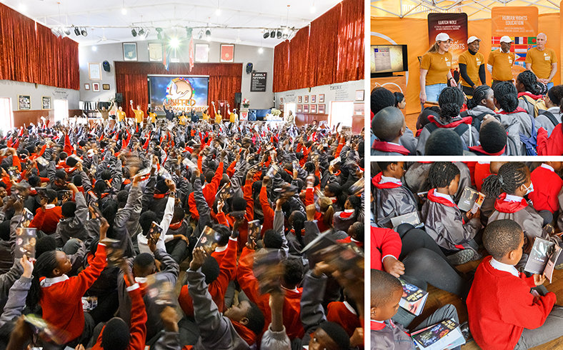 UHR-frivillige brakte dette oppdraget til Waterkloof barneskole i Pretoria. Da seminaret begynte og tre av Youth for Human Rights infovideoer (PSA-er) ble vist, ble elevene fengslet. Budskapet fylte skolens sal: «Kan du si hvilke av disse barna som ikke ble født frie? Kan du si hvilke av disse barna som ikke ble født like? Kan du si hvilke av disse barna som ikke fortjener å bli behandlet med verdighet? Det kan ikke vi heller. Menneskerettighet nr. 1, ’Vi er alle født frie og like.’» Elevene fikk deretter hvert sitt eksemplar av Hva er menneskerettigheter?-heftet, og noen åpnet det med en gang, nysgjerrige på å finne ut hva det inneholdt.