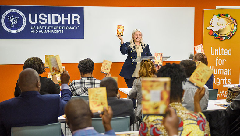 Da hun flyttet til Washington, DC, grunnla hun Det amerikanske instituttet for diplomati og menneskerettigheter (USIDHR) i 2019 og begynte å bruke United for Human Rights’ undervisningsmateriell.